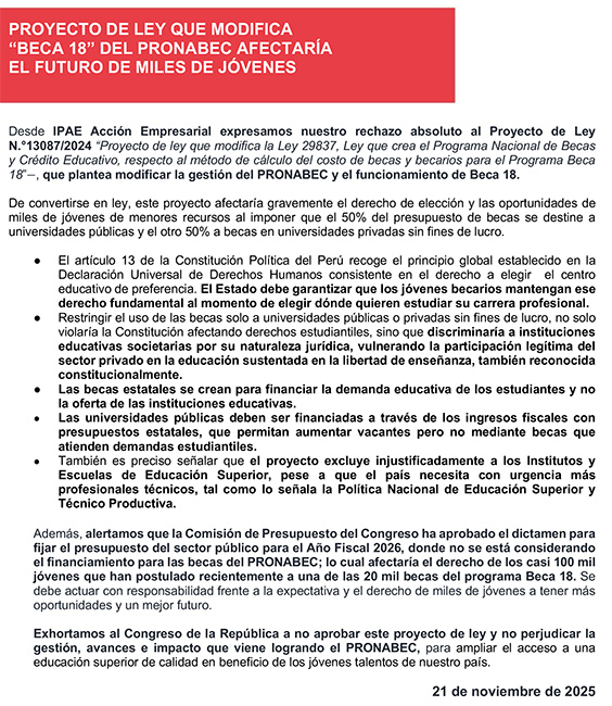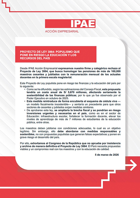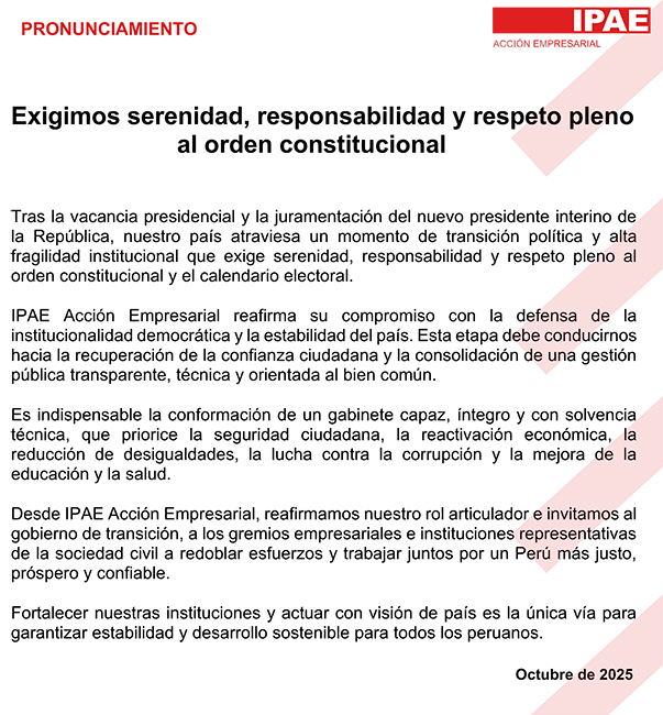 Nuestro propósito es impulsar la acción empresarial para generar institucionalidad sólida, crecimiento económico sostenible e inclusivo, educación de calidad e igualdad de oportunidades para el bienestar de todos los peruanos.