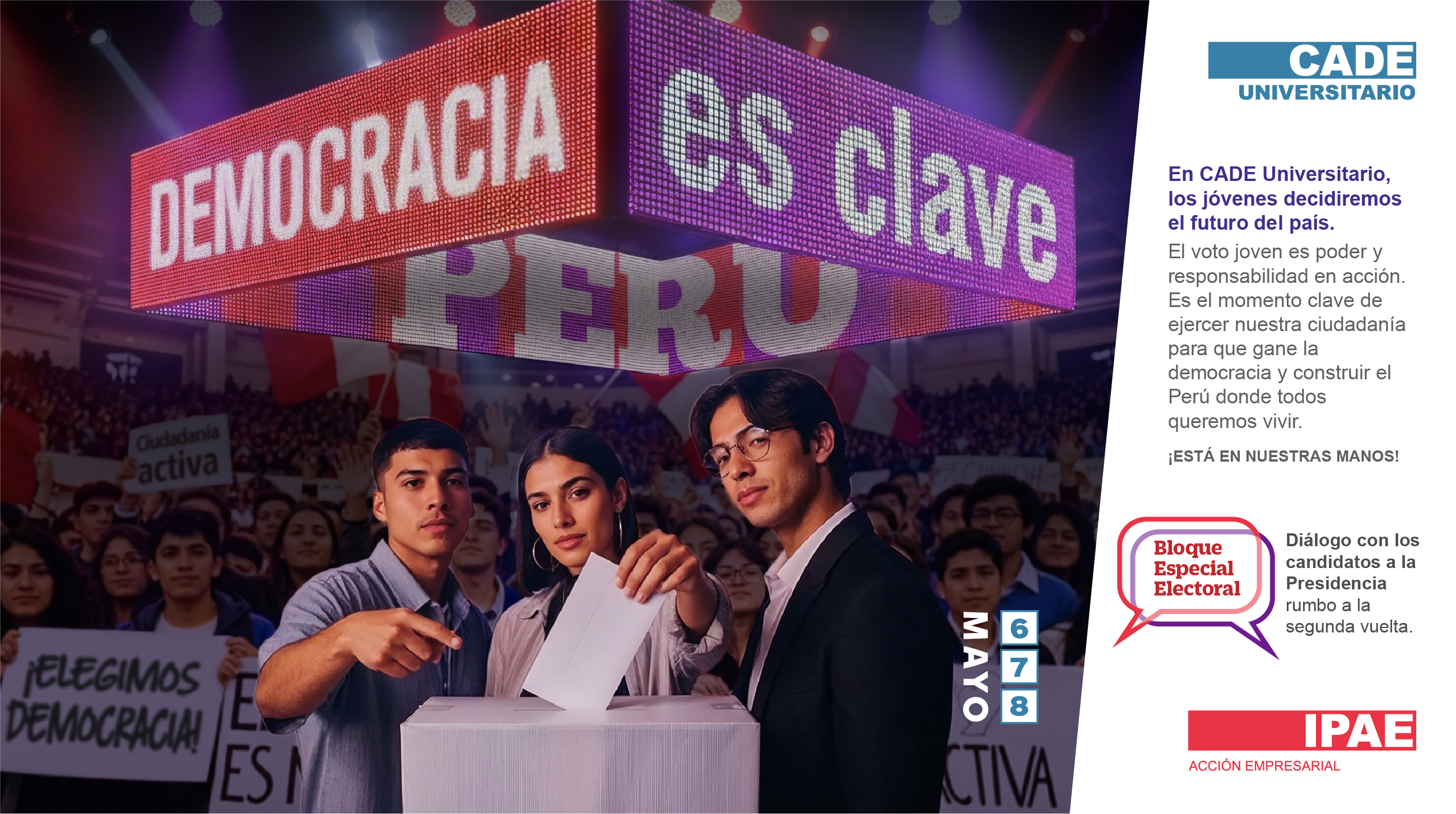 Lima, febrero del 2026.– Más de 6 millones de jóvenes tendrán un rol decisivo en las próximas Elecciones Generales 2026, según el Registro Nacional de Identificación y Estado Civil (Reniec), en un escenario retador por la implementación del sistema bicameral, el gran número de partidos políticos y una cédula de votación con 38 organizaciones políticas participantes. Frente a este contexto, se vuelve urgente seguir fortaleciendo una ciudadanía activa, informada y responsable. En ese marco se realizará CADE Universitario 2026, el encuentro de jóvenes líderes más importante del país organizado por IPAE Acción Empresarial, del miércoles 6 al viernes 8 de mayo, y por primera vez en la Escuela Militar “Coronel Francisco Bolognesi” de Chorrillos.