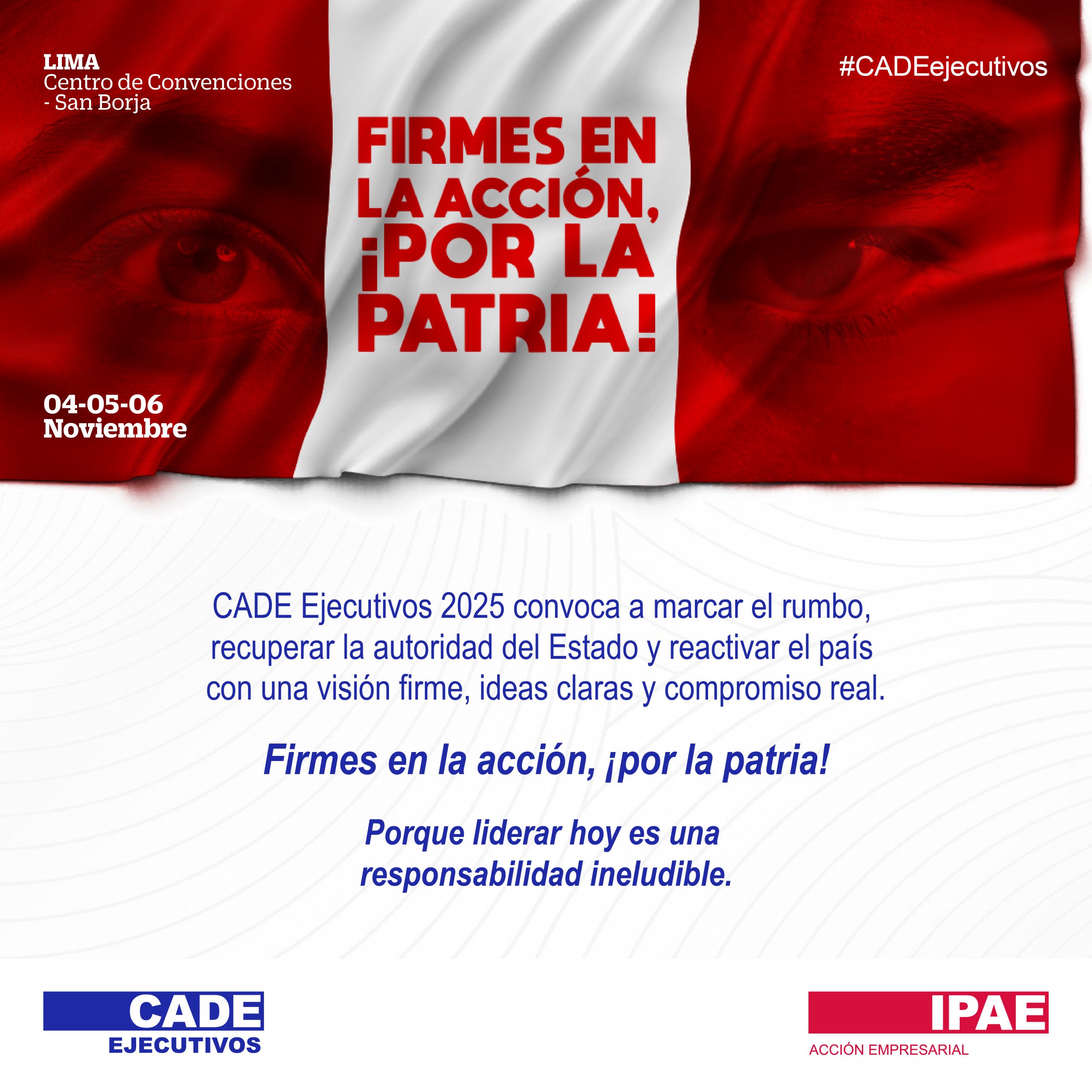 CADE Ejecutivos 2025, organizado por IPAE Acción Empresarial, reunirá a más de 50 líderes nacionales e internacionales de los sectores público, privado, académico y social, quienes debatirán sobre los principales desafíos estructurales del Perú en un contexto preelectoral.